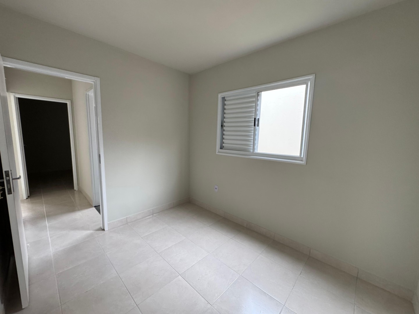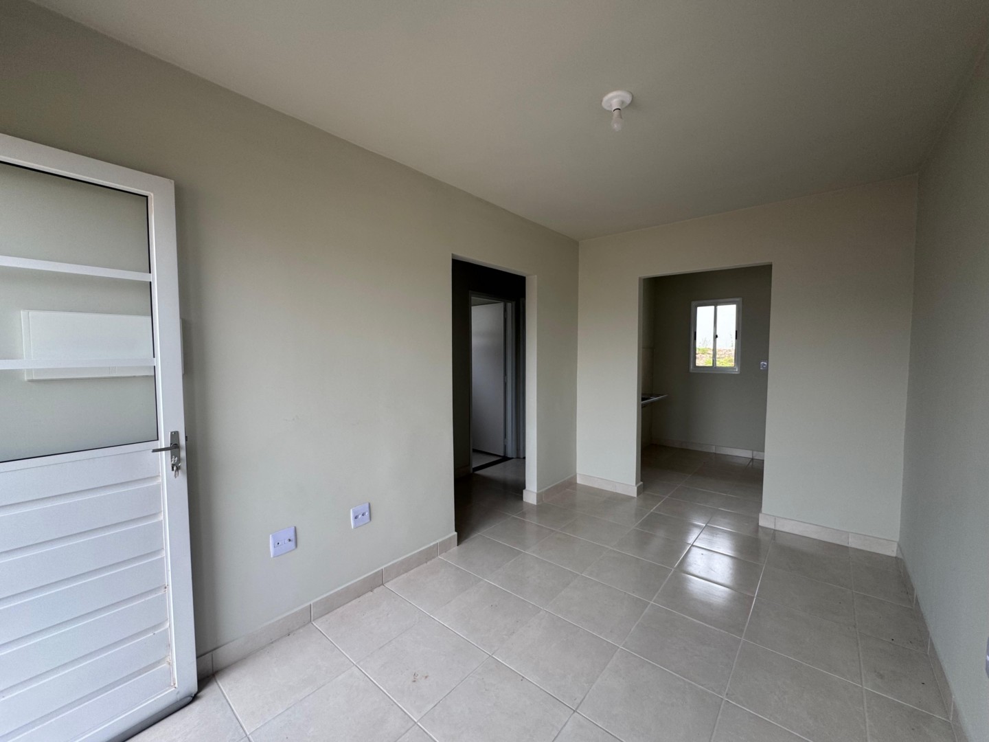 Casa no bairro Neves, com aproximadamente 48 m², composta por dois quartos, sala, cozinha, banheiro social, área de serviço e quintal.